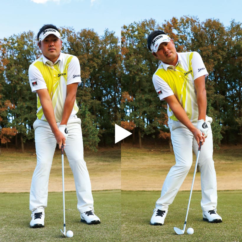 アドレスするまでのルーティンで軽いジャンプを入れるとさらにいい。重心が下がって再び上体に力が入るのを防げます。