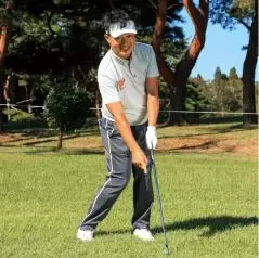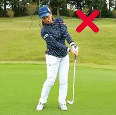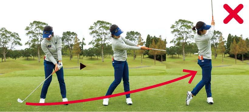すくい打ち傾向になっているとフォローでクラブが高く振り出され、最終的にクラブを担ぐような高いフィニッシュになります。下から上に振る形になっているわけです。