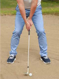 バンカーショットではハンドファーストに構えるのは避けましょう。インパクトでリーディングエッジが先に下りて砂の深くまで潜ってしまい、クラブヘッドが抜けなくなるためです。バウンスが使えず、砂の爆発力も引き出せません。そのため、バンカーからの脱出を難しくしてしまうのです。