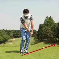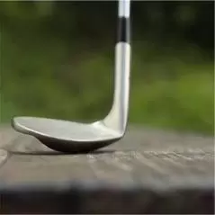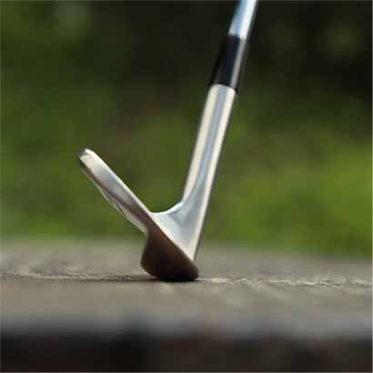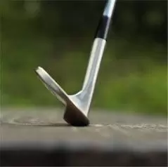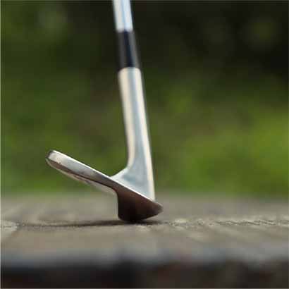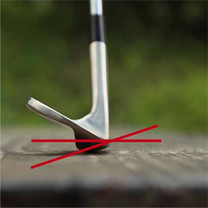 ソールを硬い地面につけて、シャフトを垂直にした状態からシャフトを傾けてフェースを立ててみましょう。そうするとリーディングエッジが地面につきます。この状態でインパクトするのなら、ソール(バウンス)を使わずにボールをヒットするということになります。
