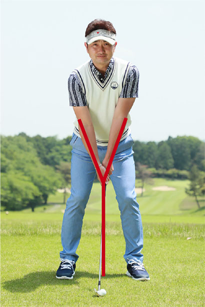 アドレスはY字に構えて、インパクトはy字の体勢で打つ