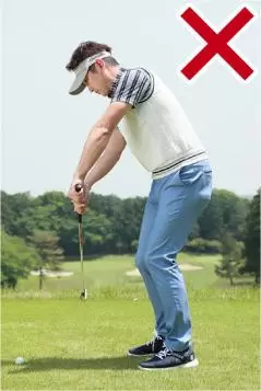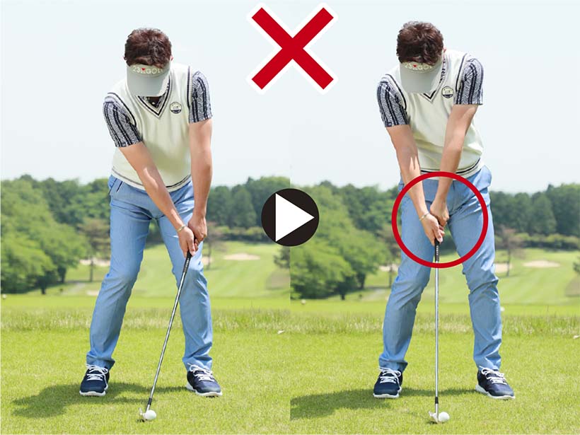 ところが、実際はほとんどのゴルファーはハンドファーストを勘違いしています。ハンドファーストはインパクトの体勢であって、アドレスの体勢ではありません。軽くハンドファーストに構える程度ならいいのですが、ハンドファーストに打とうとして最初から極端なくらいハンドファーストに構えているゴルファーがとても多いのです。