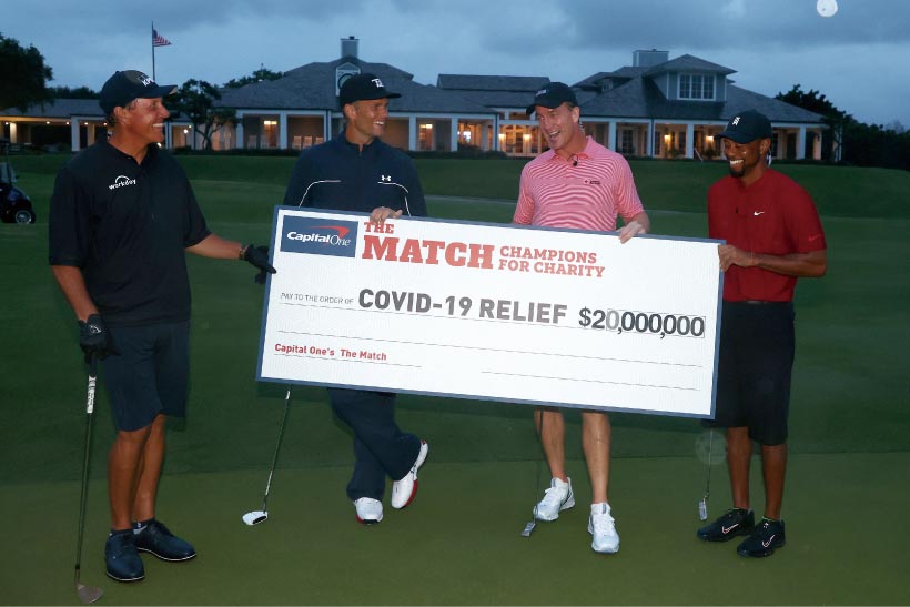 米国では5月に様々なチャリティイベントが実施された。タイガー・ウッズ、フィル・ミケルソン、そしてNFLのペイトン・マニングとトム・ブレイディが参加した「ザ・マッチ:チャンピオンズforチャリティ」では、寄付金総額2,000万ドル、視聴者はケーブルテレビ史上最多の平均580万人を記録した。また、ローリー・マキロイ、ダスティン・ジョンソン、リッキー・ファウラー、マシュー・ウルフが出場した「テーラーメイド・ドライビングリリーフ」は視聴者数が235万人を記録し、550万ドルの寄付金が集まった。