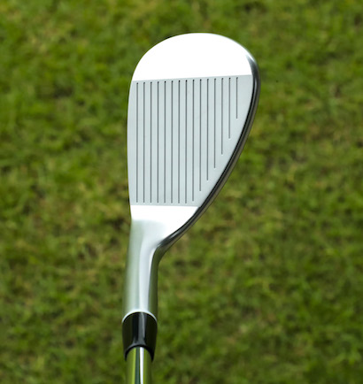 鹿又「フェース面に目立つミーリングはなく、シンプルな構造なんですが、球がフェースから離れないくらい乗って、その分ちょっと低めに出ます。長い距離でスピンがかかるウェッジは当たり前だと思いますが、これは短い距離でもスピンコントロールがしやすいですね」