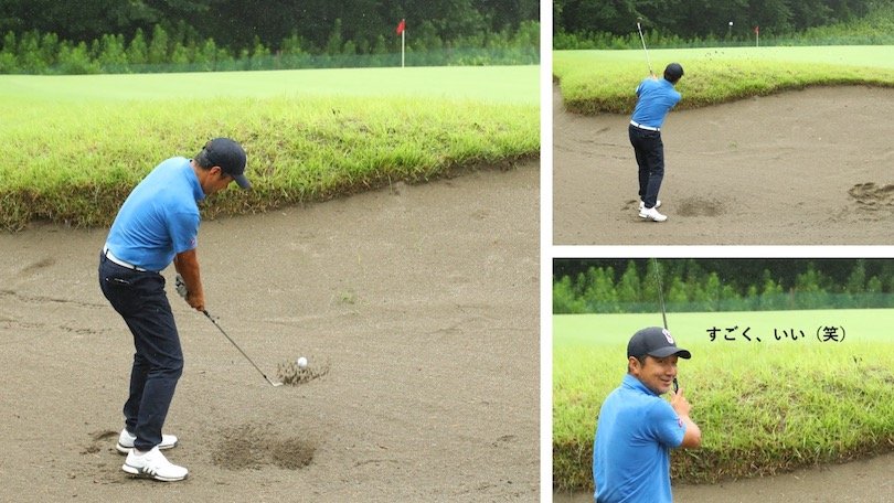 普通に構えて普通に打てばバウンスが充分効いてくれる。今日打ったバンカーは柔らかい砂だったから、バウンスが効かなければズボッと入ってしまうところが、バウンスが効いてくれて“ナイスアウト”が出ました。『RM-4』は上級者やツアー向けだけどやさしいと感じられた一因ですね」
