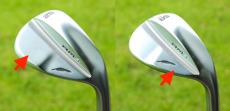 【56度〜60度】はヒール側を厚くすることでアプローチショットでの操作性と打感を向上させている。