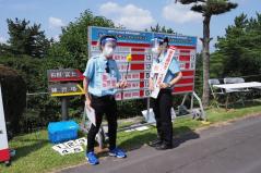 この大会の開幕を祝うかのように、長く続いた梅雨が明け、夏らしい気持ちのいい空が広がる中で“賞金の寄付に賛同した女子プロ”たちがスコアを競い合う。