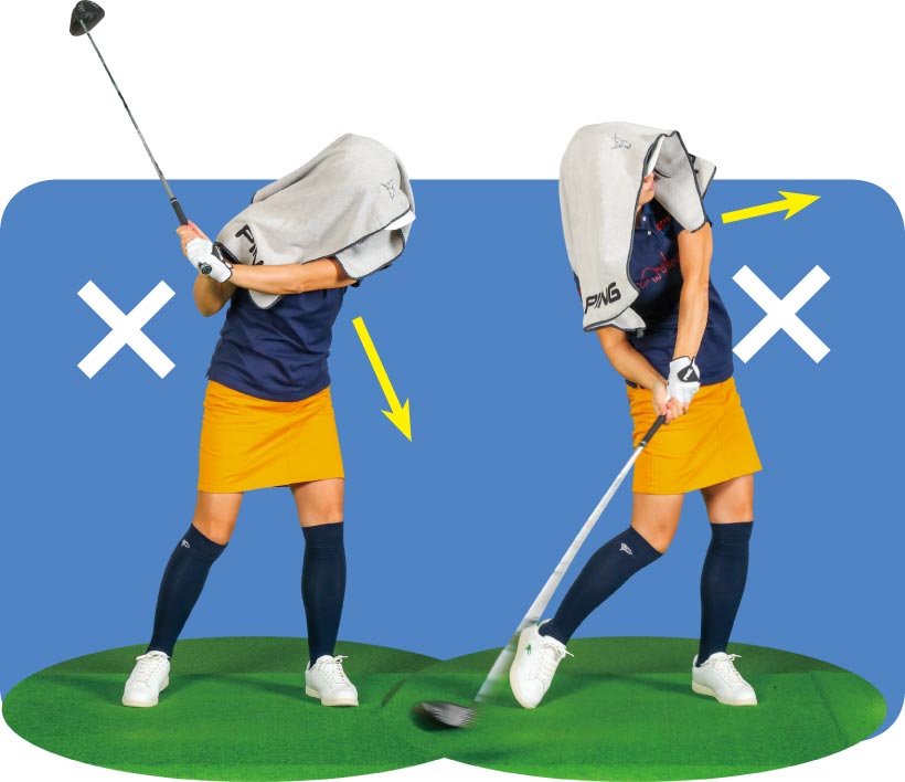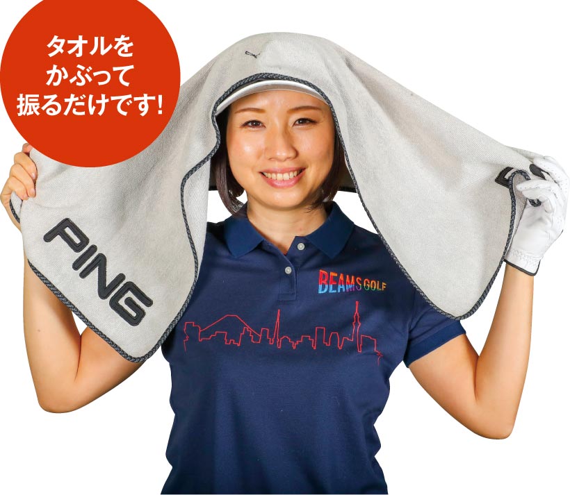 ドリル7|スイング軌道と入射角が安定!タオルをかぶってスイング