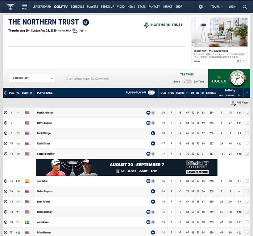 さて、2日目に59を叩き出して初日の72位から一気に2位に浮上したシェフラー。初優勝への期待が膨らんだが通算30アンダーにまでスコアを伸ばしたダスティン・ジョンソンには抗えず4位に終わった。50台を出した選手の最終成績はというと優勝は12例中5例だけ。ジム・フューリクは米ツアー唯一の58を含め2度も50台を出しているが、ともに優勝には届いていない。
