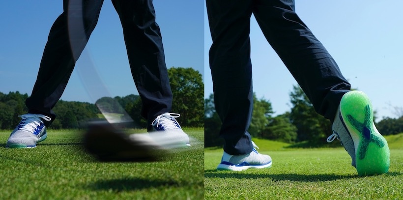このことから「TOUR360 XT-SL」という名前が物語るとおり、ツアープロレベルのパワーはもちろんだが、体重移動を大きく活用し従来のスパイクシューズのようにアウトソールが地面に刺さることでグリップ力をはっきして欲しいゴルファーに対応可能なグリップ力を備えているということがわかるのではないだろうか。