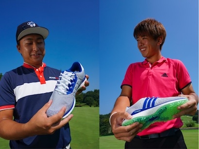 ここからは、ともにドライバーの飛距離が300ヤードを超えるハードヒッターの田所嵩瑛プロと研修生の高橋大輝さんによるインプレッションをお届けする。偶然にも田所プロは「コードカオス BOA」を、高橋さんは「コードカオス BOA ロウ」を愛用中とのことだった。この二人に「コードカオス BOA」と「TOUR 360 XT-SL TEX」を、それぞれ履いてプレーしてもらい、その履き心地を聞かせてもらった。