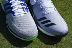 そして、最後に繊維素材アッパーの「TOUR360 XT-SL TEX」だが、これまたアディダス ゴルフらしい独自性の高い素材と製法が採用された要注目のモデルと言えるだろう。皆さんご存知であろう「プライムニット」は1本の糸で編み上げられたアッパーだったが、この「TOUR360 XT-SL TEX」のアッパーは糸を縦・横で織って作られている。そして、ソフトなフィット感、通気性、軽量性にすぐれるだけでなく、縦・横方向へのストレッチ度合いが低くなるため、繊維素材アッパーとしては最高レベルの安定性を実現している。また、繊維素材でありながら撥水性能があるため急な天候の変化にも対応できる。