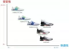 この「BOOST」によって皮革素材アッパーや安定感の高い、いわゆる足への負担が比較的強い種類のシューズには類を見ない快適性をもたらすことが可能になり、スイング時の脚の蹴りに対するエナジーリターンが大きい上に歩行時などの快適性はランニングシューズレベルとなっている。