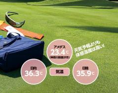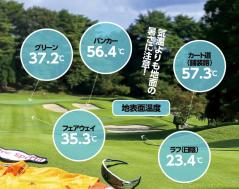 直射日光、地面からの照り返し、地表面温度の影響を受けるゴルフコースでは、近隣のアメダスの観測地点(日陰、照り返しなし、風通しあり)よりも気温が高くなることが多い。また、芝や池は土やアスファルトよりも紫外線を反射する。実際のゴルフ場で気温、地表面温度、紫外線の強さを測ってみた。