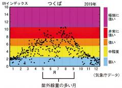 この時季の紫外線はどれだけ強いか。指標になるのは、肌に対する紫外線の影響を表す「UVインデックス」だが、2019年は関東地方でも「非常に強い」に分類される日が7月で8日間、8月は17日間もあった。また、紫外線は太陽が高い位置にあるほど強くなるので、同じ時季の沖縄では「極端に強い」レベルに達する日がほとんど。