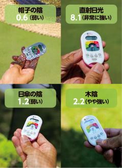 地面からの反射や空気中の散乱もあるので木陰でも紫外線はゼロにはならない。また、帽子や日傘だけで紫外線を100%防ぐことも難しい。いろいろなアイテムを組み合わせて肌や眼を守ろう。測定/6月17日14時・芙蓉CC