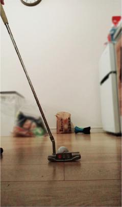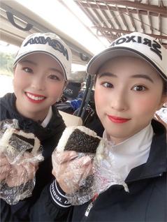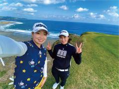 先日はこのオフ2度目の沖縄合宿を行いました。一緒に練習しているのは同級生の仲良しプロ・後藤未有ちゃん。なかなか外出は難しい状況なので、自炊しながら過ごしています! 部屋では、空いているスペースでパター練習も。的はお米です(笑)。