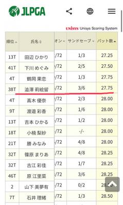 また、パターもいままでで一番好調で、試合におけるスタッツでも、パット数27.75で4番目にランクインすることができました。