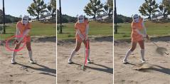 加えて、バンカーに入れることも多かったのですが、こちらも好調(笑)。バンカーからでもしっかりと寄せてパーを取れるようになりました! テークバックで手を低く上げることと、ハンドファーストのインパクトを意識するのが、〝砂イチ〟のポイントです。