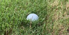 で、ラウンドで苦労したのが芝質。フェアウェイやラフにところどころ野芝に混じってティフトン芝のような柔らかくて密集している芝の部分があるんです。そこにボールが行ってしまうとスポッとボールが沈んじゃう。