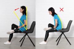 1.椅子に浅く腰かけ、背筋を真っすぐ伸ばす。