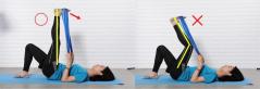 1.仰向けになり、片方のヒザを曲げる。もう片方の足裏にセラバンドやタオルをかけ、手でその両端を持つ。