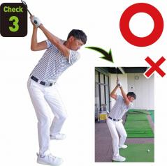 もう一つのポイントはトップの高さです。ぼくは横振りを意識していますが、疲れてくるとどうしても手でクラブを上げてしまって縦振りになりがち。バックスイングで左肩をしっかり回すことができず、ダウンスイングでも手打ちになって軽い球しか打てなくなります。胸が後ろを向き、クラブが耳の後ろに上がっているかどうかを動画チェックします。