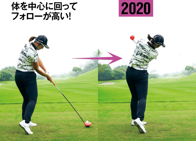でも、昨年はフェースターンが大きくて、低いフォローになっていました。そこも中島コーチに指摘されて、フェースターンを抑えると強いフェードが打てるようになりました。