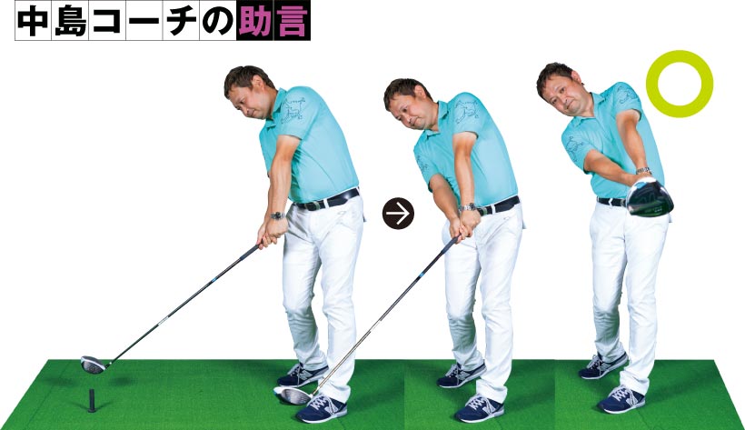「インサイド方向にヘッドを返そうとするとチーピンが出るか、カット軌道になりすぎてスライスのミスになりやすいです」(中島)