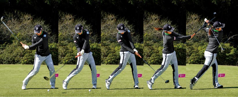 「体の動きに合わせてゆるやかにフェースターンすれば、フォローでも両腕の間にヘッドがおさまる理想の形になります」(中島)