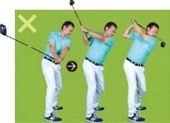 「アップライトに外側に上げれば、大振りしてもシャフトがクロスしません。トップでもヘッドが両腕の幅におさまっている」(中島)