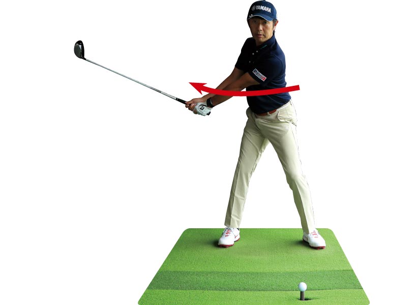 バックスイングで深い捻転を作る