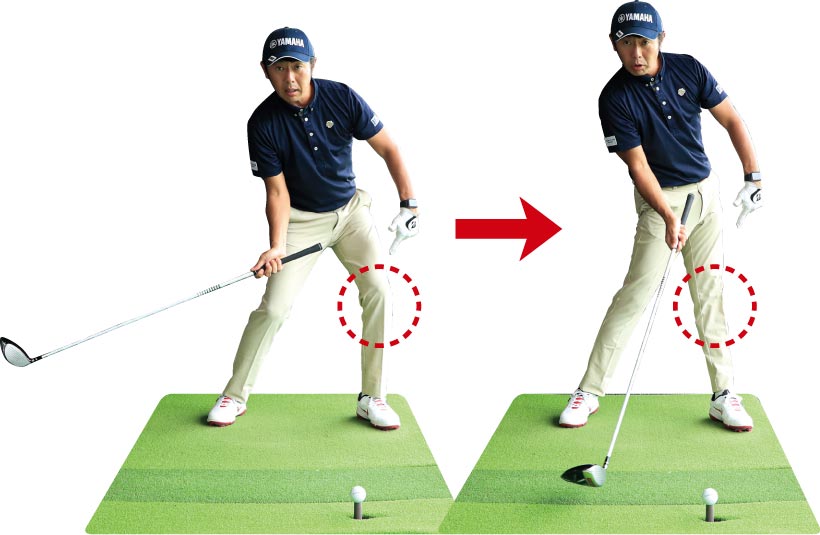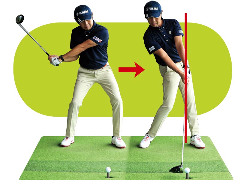 インパクトで左ヒザを伸ばす