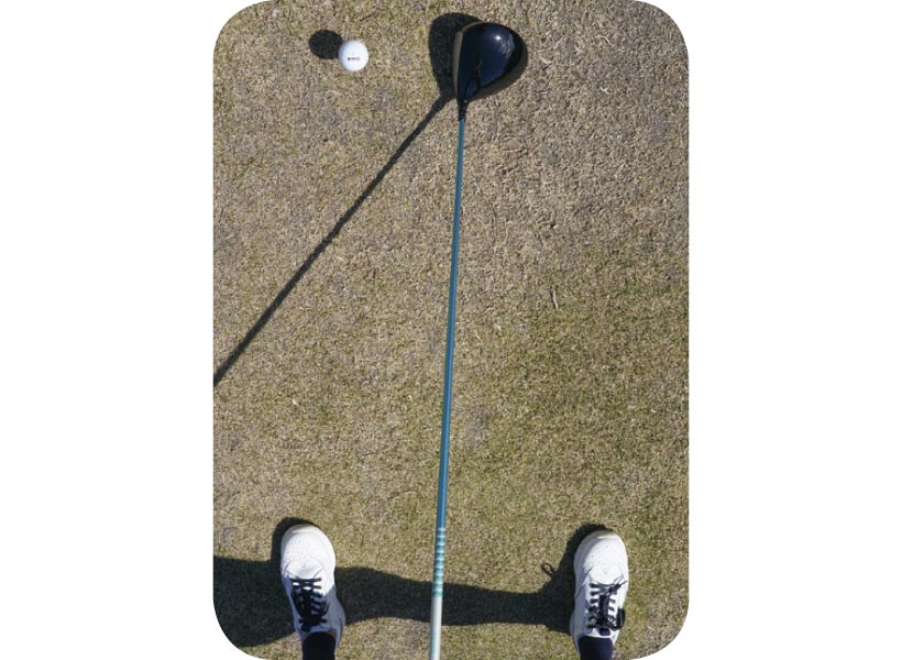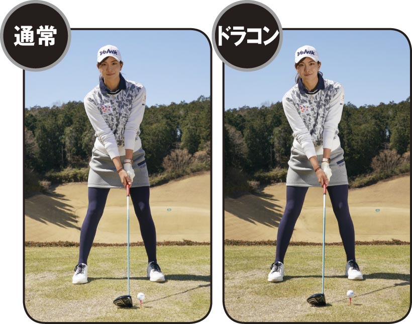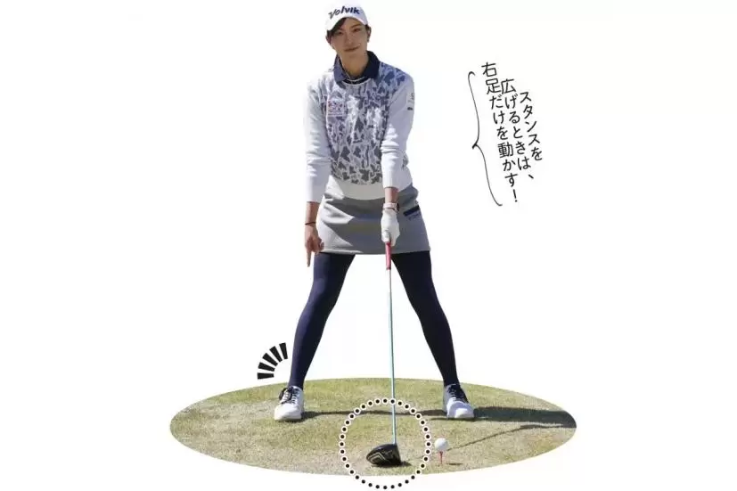 軸ブレしないドラコンスタンスの秘密はコレ! ワイドスタンスにしたときも、ヘッドは体のセンター