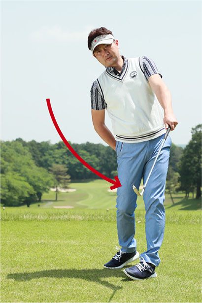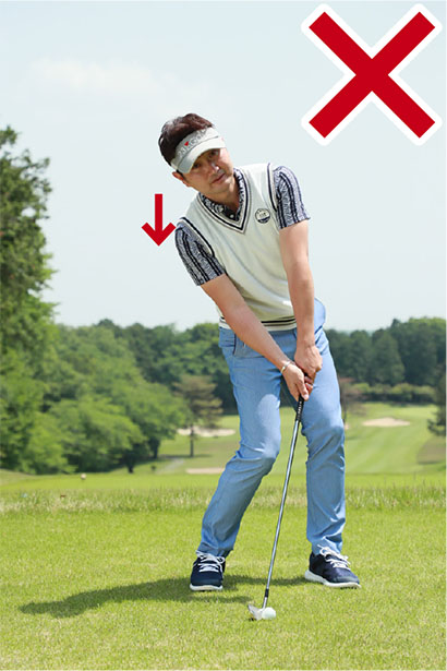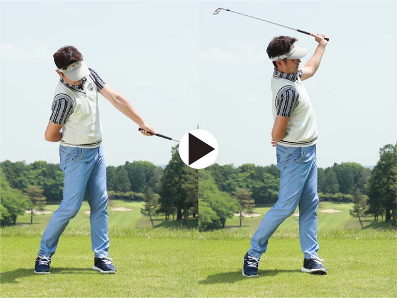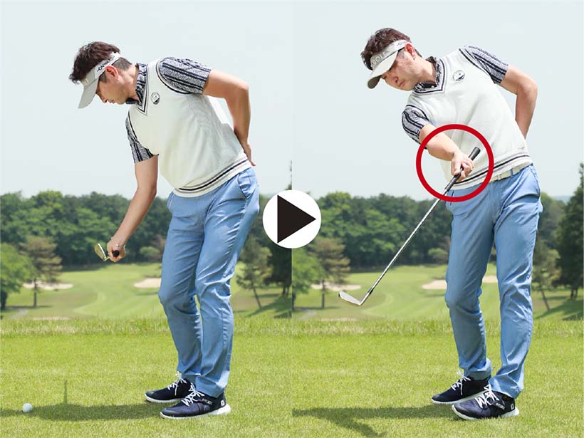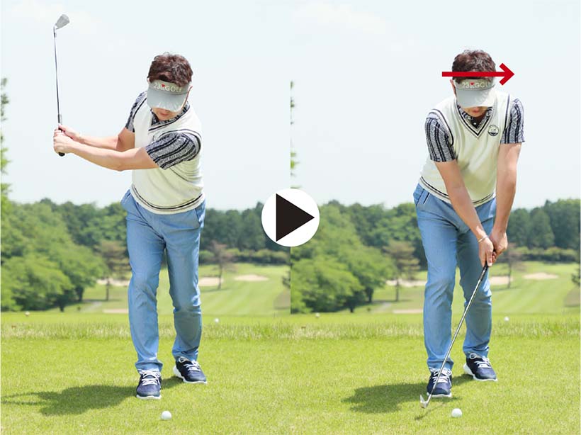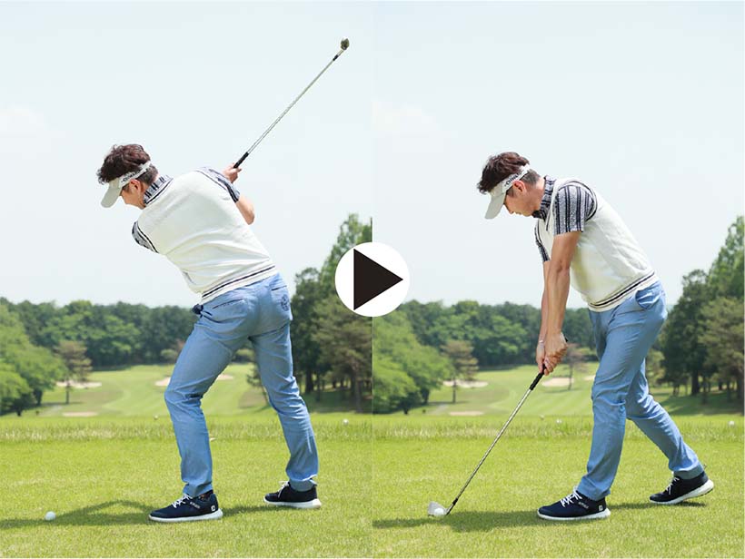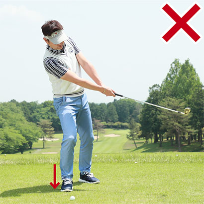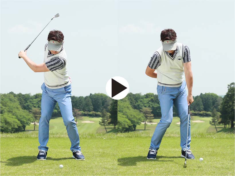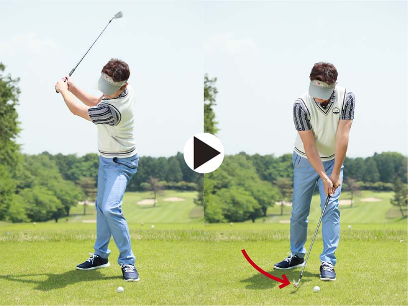 アイアンショットではクラブにきれいな円運動をさせて、スイング軌道の最下点の少し手前でボールをとらえるのが理想です。ところがダウンスイングで体が早く開いたり、ボールを上げようとしてダウンスイングで右肩が下がってリリースが早くほどけたりすると、ボールを下から拾い上げるようなスイングになってしまいます。つまり、すくい打ちです。