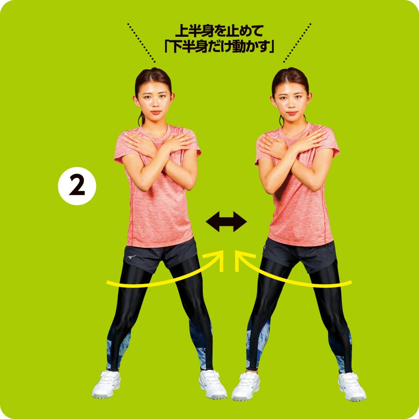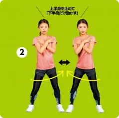 ②上半身を動かさないように、上げた方の足を左右に開閉する。両足で行う。