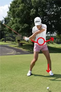 ダウンスイングは左足の内側に体重を乗せて、おヘソを左に回すだけでいい