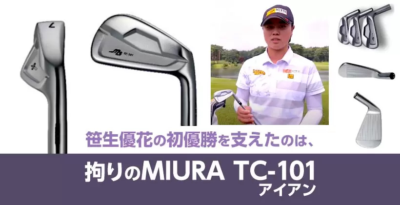 笹生優花のアイアンに求める要望は「とにかく左へ行かないアイアン」「ロングアイアン(#4 と#5)に安心感が欲しいので大きく見えること」の2つだったという。話し合いの上マッスルバック形状に比べミスショット許容量が高いツアーキャビティのTC-101を選択。スタジオで測定したデータを踏まえ、三浦技研現会長の三浦勝弘がみずから研磨し、笹生TC-101スペシャルモデルが誕生したという。出来上がったクラブで実際に打ってみた笹生優花は「ボールがフェイスに載っている時間が長く感じる」と言い、その打感に納得。もうその後の実戦での投入に迷いは無かったという。