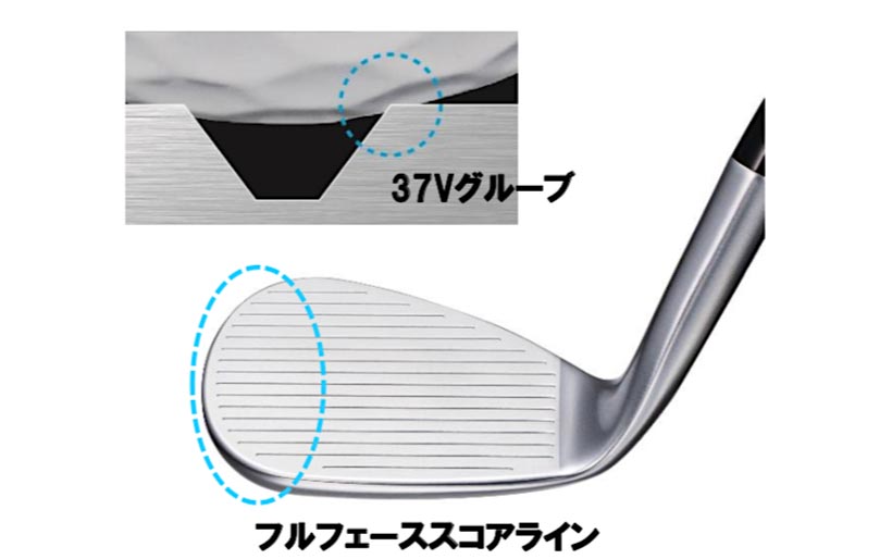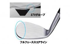 37Vグルーブは、2010年に導入された溝規制のもと、フェース上の角を鋭くするべく、従来とは異なり、溝の入れ方を鈍角にデザイン。これにより、フルショットはもちろん、短い距離のアプローチショットであっても、安定して大きなスピンが入ることになり、距離のコントロール性も向上している。