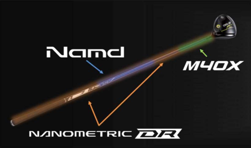 シャフトには「Namd(エヌアムド)」「M40X」「ナノメトリック DR」の3種類の先進カーボン素材を複合。