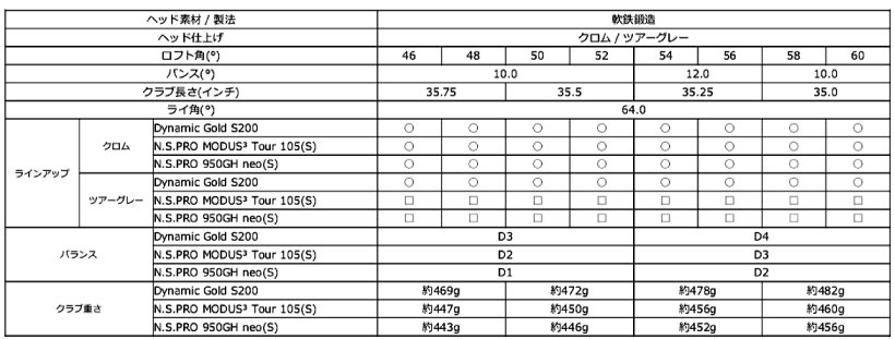 ソールには広い対応力を持つCグラインドを採用、ロフトは8種類を用意し、クロムとツアーグレーの2モデルをラインアップした。