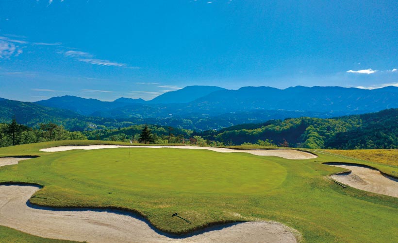 栃木県那須の丘陵地に広がるフェアウェイは広くゆったりとし、巧みに配置されたバンカー、地形を生かしたグリーンなど、コースの監修に携わったのは名手ジーン·サラゼン。