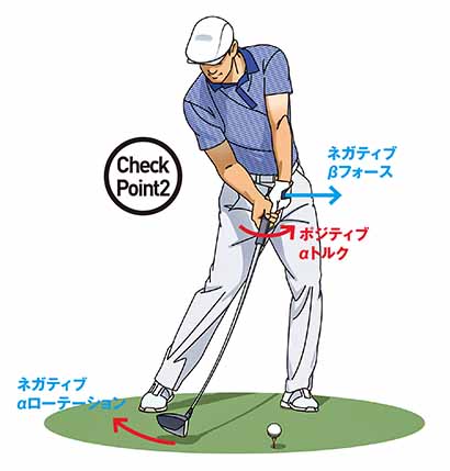 すなわち、ローテーションはαのみに単純化している。常にフェースはスクエアで、絶対に左に打ち出さないインパクトをアドレスで担保しているのです。これがデシャンボーの目指したシングルプレーンであり、その主役はβフォースです。