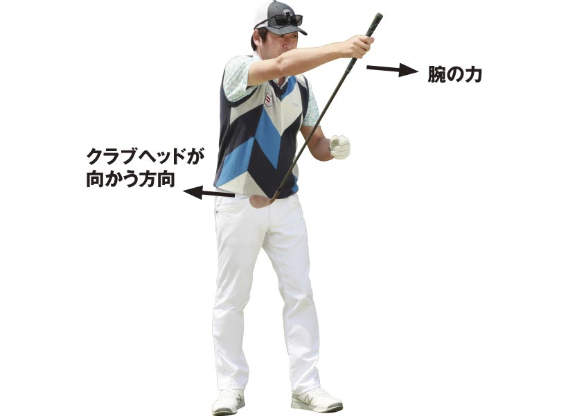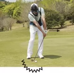 [ミスの原因]腕が前に出ると、ヘッドは刺さりやすい