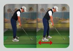 ホーガンのスタンスは、長い番手はクローズド、短い番手はオープンにするのがベースだった。なぜこんなアレンジが必要だったのだろう?「ポイントは右腰の位置が変わること」と森プロ。インパクトの体勢からの“逆算”で決まるという。