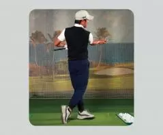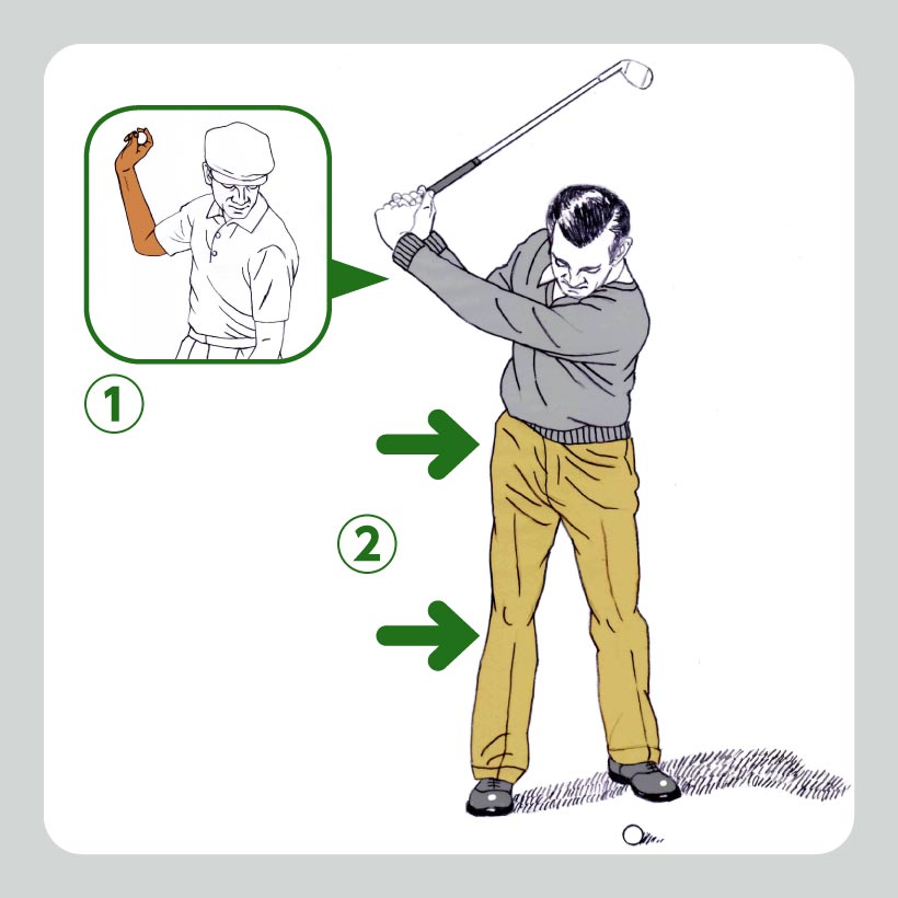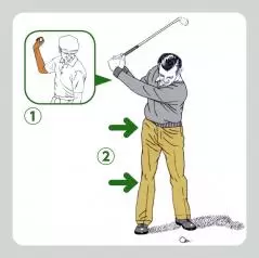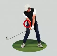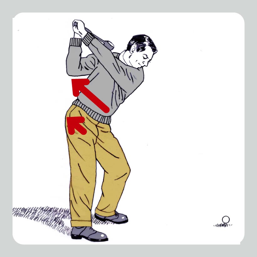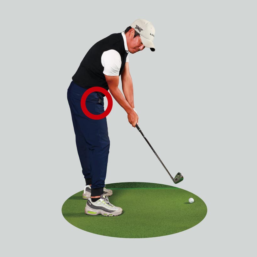 ②右ヒザの位置を変えず右腰のターンを抑制