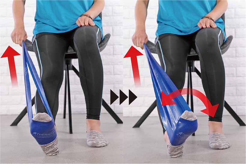 【応用】 セラバンドがない場合は、そのまま足首を曲げ伸ばしするだけも効果がある。