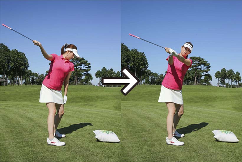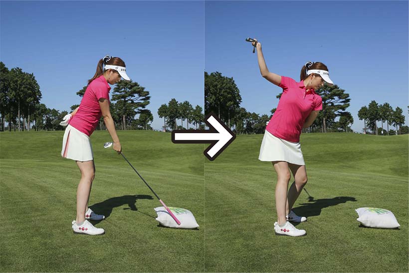インパクトに向かうクラブヘッドの加速感覚を体感しよう→
