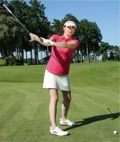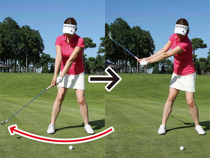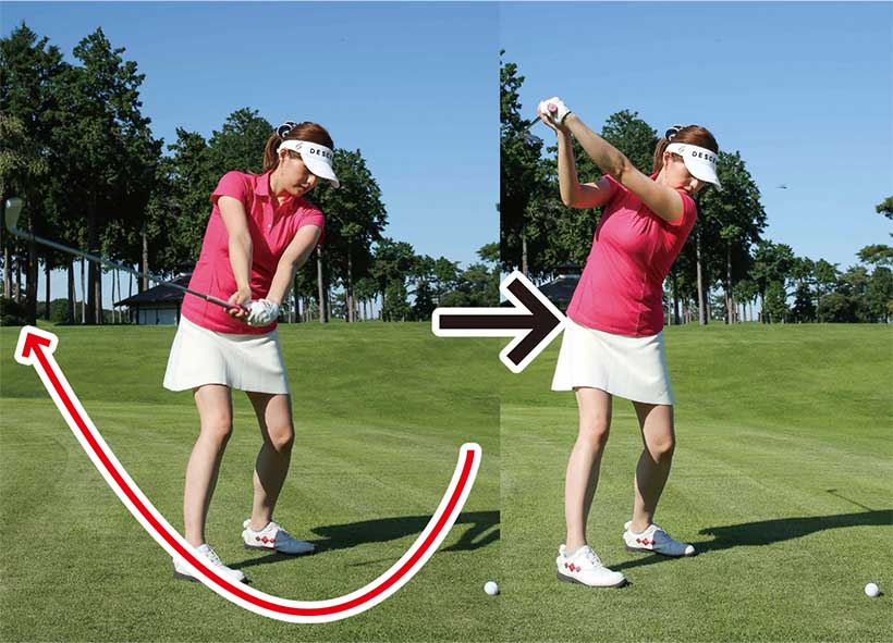 フォロースルーからスイングをスタート。バックスイングの自然な動きや、自分に合ったトップの位置が簡単につかめる。