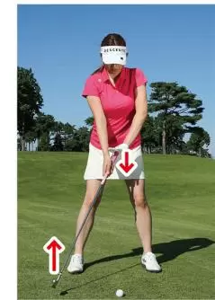 テークバックの始動はテコの原理で左手を押し下げるイメージ